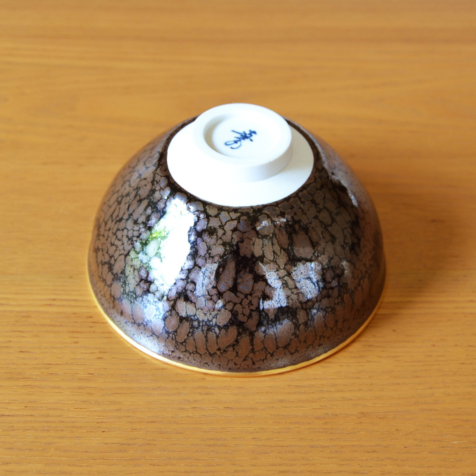 Shinemon Kiln is renowned for pioneering the art of *Yohen*?a glazing technique where unpredictable transformations occur within the kiln, resulting in unique, natural expressions of beauty. This particular bowl showcases the *"Yuteki Tenmoku"* (Oil-Spot Tenmoku) glaze, a highly prized effect formed during the firing of iron-rich glazes.